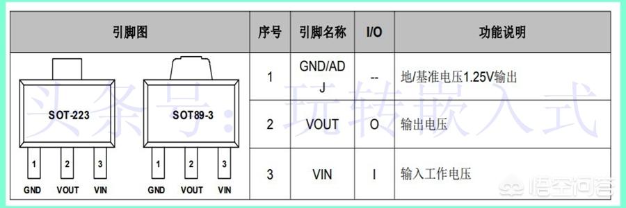 LDO的好处就是外设元器件少,输出纹波低,对于可调版本而言,需要外接两个电阻用于调节输出电压。计算公式为Vo=1.25×(1+R313/R314)。输出为2.4V时,经过计算,R313/R314的比值为0.92。为了方便输出,如果PCB空间较大的话,可以将R313用滑动电位器来实现。该LDO常用的封装有SOT223、SOT89以及SO8等。封装和引脚分布信息如下所示。
