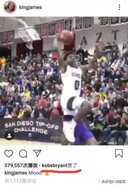 詹姆斯在ins上晒出了大儿子布朗尼的比赛视频。视频中布朗尼在进攻中完成了一记暴扣。值得一提的是,科比点赞了这条Ins。