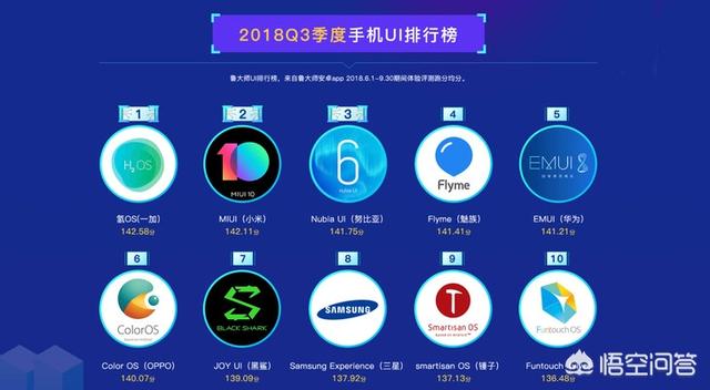 在2018年第三季度鲁大师UI排行榜上以141.75分居于第三的位置,在流畅度排行榜上也有出色的表现。