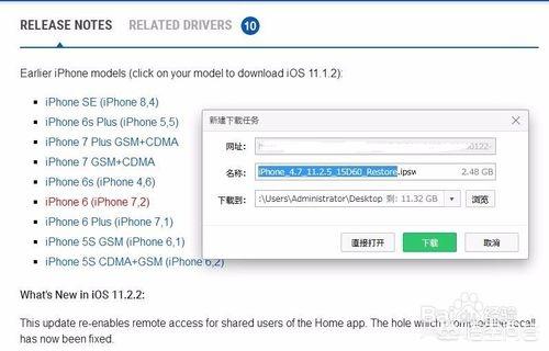 这里建议是用已经下载好的固件来进行更新,这样比较稳定,也就是后边的恢复iphone选项,当然前提是已经下载好固件,这个千万不要下载错了,要根据手机的信号来下载系统版本,这个在网上很多,我们随便找一个网站下载最新的ios系统,这里是iphone6的系统固件,此时的最新系统是11.2.5.