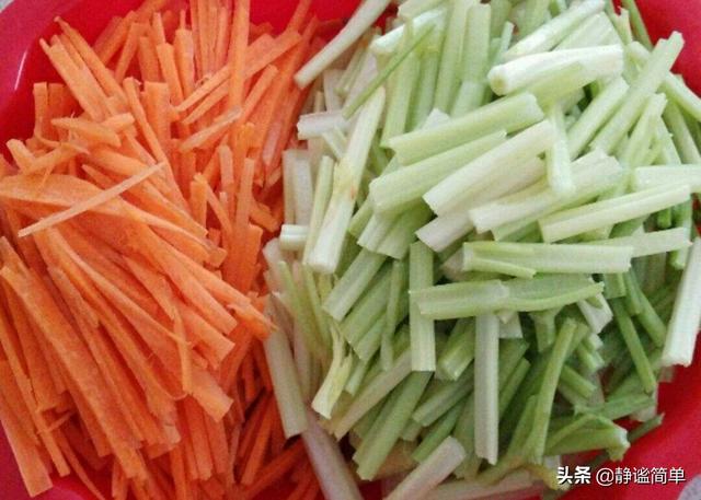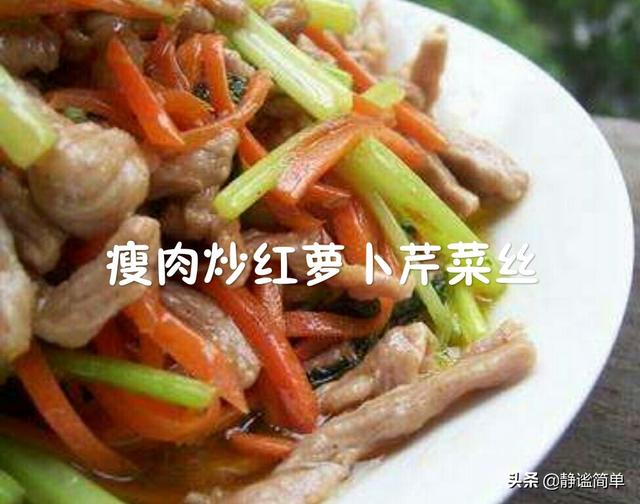 一盘又红又碧绿又香的瘦肉炒红萝芹菜丝好了。
