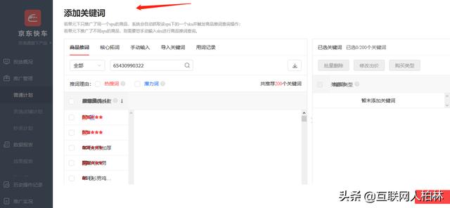 如果是电商平台的话,你对行业、平台以及你自己的店铺有着清晰的了解。我们以京东的京准通平台为例,看看如何添加关键词。