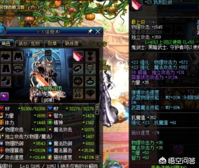 从截图中我们可以看到,角色装备上24的执行巨剑显得非常霸气,如果把这件武器放在DNF的60版本,那绝对是一把神兵利器。可是时过境迁,如今的DNF已经是全民红字的时代了,再加上强化改版,无视防御的机制已经没有了,所以这把24的执行巨剑只能算是一件玩具而已。