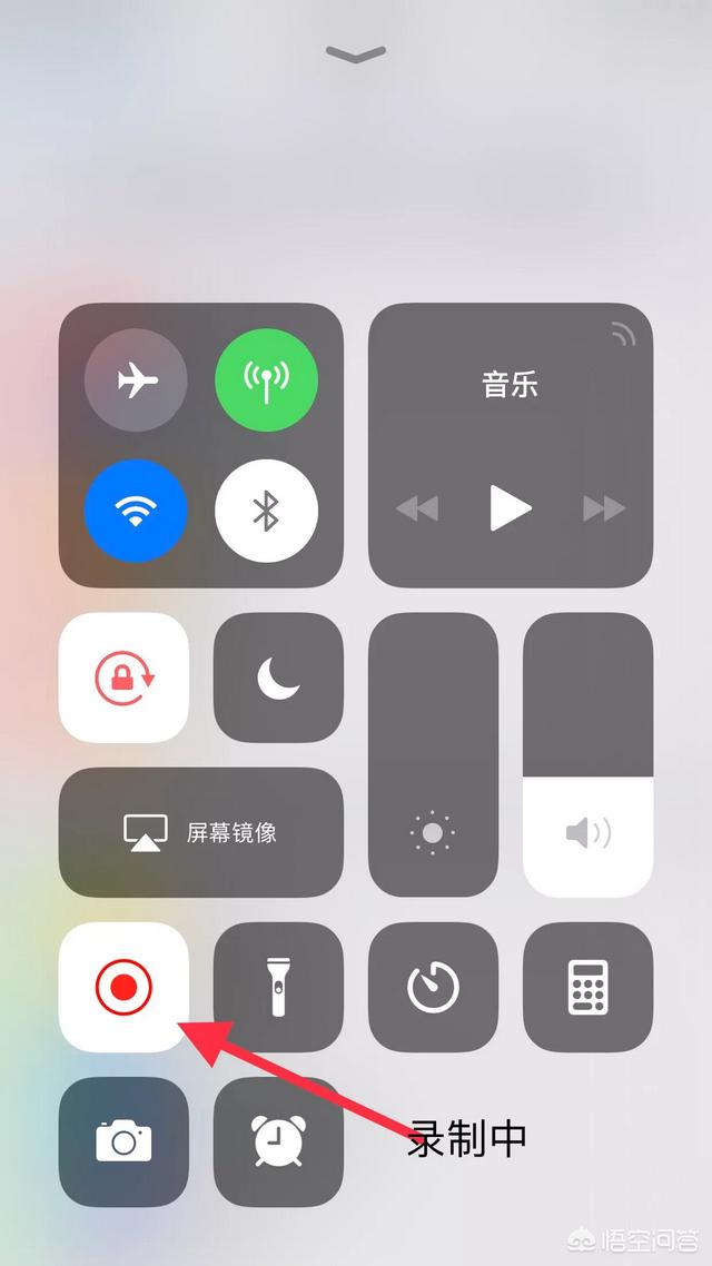 3.在你想要录制的时候上推打开快捷控制页面点击录制按钮