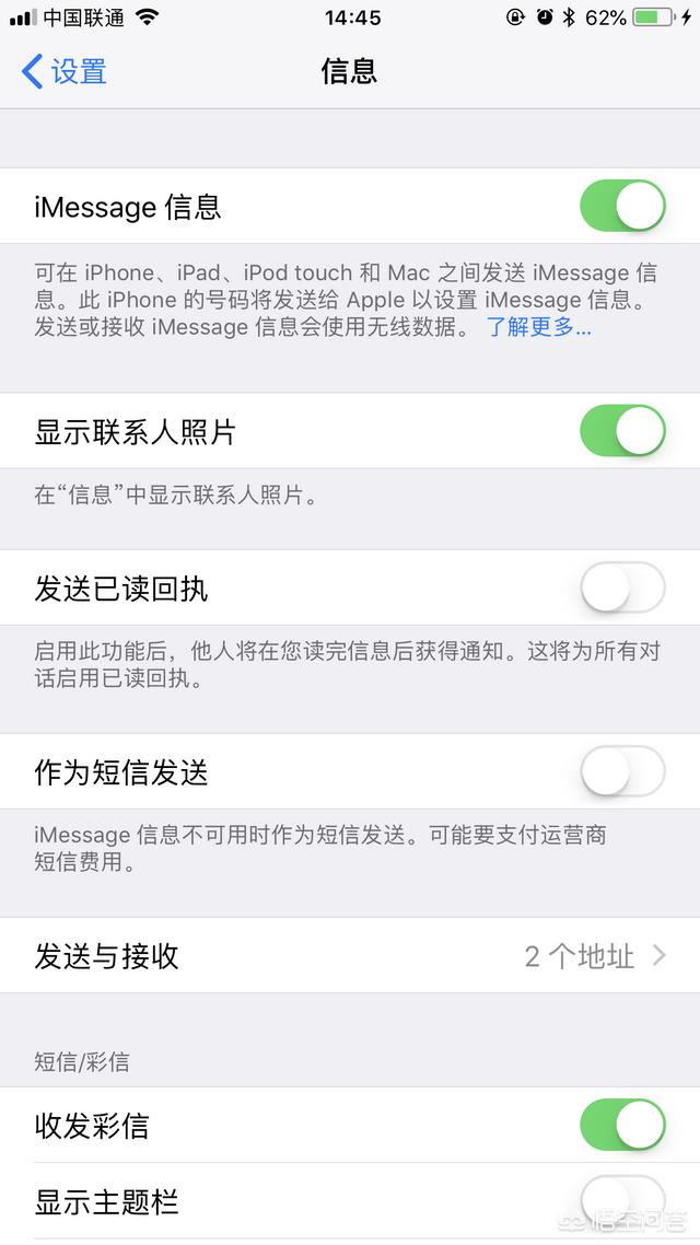 在设置- 信息里面把iMessage信息打开,然后把手机号也作为接收地址。