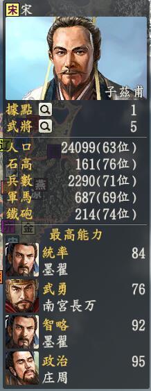 君主:子兹甫创造性:保守(为了大义,为了大义,哎哟我的腿~)君主士道:义专属政策:仁义春秋(你能不能留下这个政策还是个问题)墨言同志喜欢的君主,但是他能上来单独一个势力绝对是巧合,那都是感谢虫大大专门画了他啊!所以子兹甫都是为了大义,嗯嗯子兹甫同学虽然戴着五霸的帽子,但是腿还是很痛的,要不是虫大大专门帮我做了他的画像,嗯哼他可能就不能独立了,所以子兹甫应该很开心。哎呀,结果他一回头,发现自己居然是光杆司令。。。于是鲁国人来帮忙一下,勉勉强强走上了历史舞台反水的南宫长万,一鼓作气的曹刿,道家庄子,还有墨言最喜欢的墨子,究竟宋国怎么称霸,还得等那个说要做宋国视频的墨言出现。