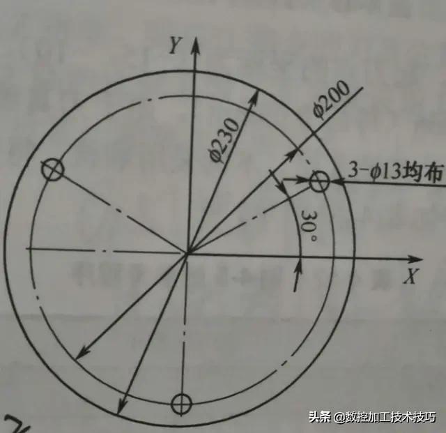 如何用极坐标编程加工三个孔。