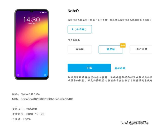 - 下图2为魅族note9稳定版的发布时间(2019/12/26),从稳定版发布至今,已经有陆陆续续的发布过体验版推送!体验版是为了照顾热衷于体验新版本系统的魅友发布的,同时也为了让更多魅友来反馈体验版的bug,类似于《今日头条》的”头条内测”!