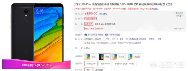 红米 5Plus是小米首款千元全面屏手机,随着红米6Pro出现,要让位市场,目前红米5Plus的3+32G版本在京东售价为849;红米5Plus搭载了骁龙625处理器,电池容量达到了4000mAh,续航不错,红米5Plus的摄像头成像也是超出了这个价位应有的水准,成像质量也是不错的。
