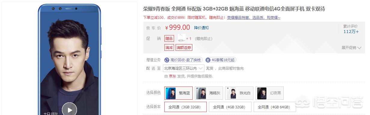 荣耀9青春版3+32G在京东到手价为899元。搭载了自家麒麟659处理器,前置和后者均为双摄像头,支持人脸识别和后置指纹识别,有GPU Turbo的加持,游戏性能得以提升。