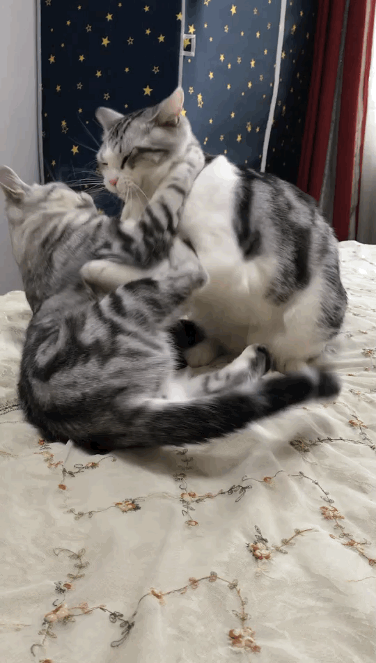 有一个问题你一定知道吧,一山不能容二虎,除非一公一母。你这两个小猫咪都成年了就会相爱了,还会给你带来一窝窝小猫咪。如果不想繁殖那就绝育吧。