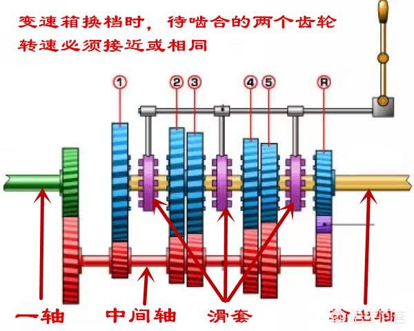 比如说,低挡升高挡时,一般都是在发动机转速比较高、车速比较低的情况下;升到更高的档位后,在车速不变的情况下,发动机转速会降低。这时候我们松开油门,踩下离合器踏板,变速箱与发动机断开连接,此时发动机处于怠速状态;而变速箱内部的齿轮在惯性作用下还在高速运转,此时待啮合的主动齿轮转速高,被动齿轮转速低,二者无法平顺的啮合。此时如果我们抬起离合器踏板,变速箱的一轴在发动机的带动下,转速降低,同时变速箱中间轴和输出轴上的主动齿轮在一轴的带动下也随之降低,与输出轴上的被动齿轮转速接近或相同,这样二者就可以顺利的啮合了。