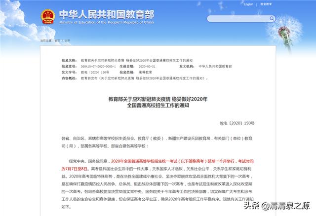 现在疫情也都结束了,最关心的问题就出现了,前段时间很热的话题就是学生何时开学?高考学子考试时间?那么现在已经出来了,高考延期……