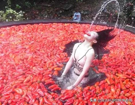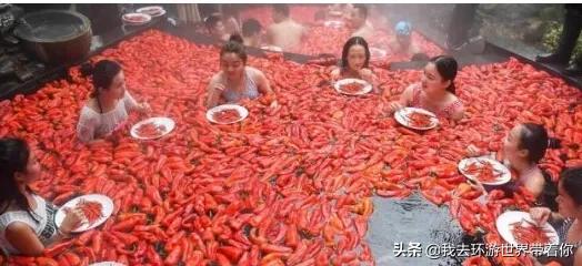 原来,辣椒温泉就是在泡满辣椒的水池中进行吃辣椒比赛,看来真的是长见识了,不怕辣的驴友们一定要去体验一下哟。