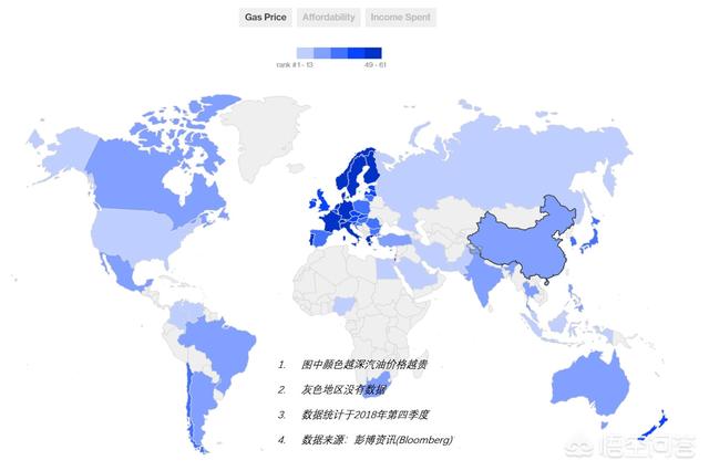 世界上汽油价格最高的国家和地区是哪里呢?看下图: