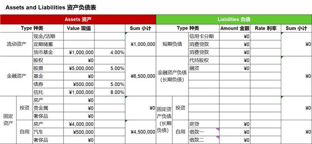 资产配置上,教科书般的合理配置,再赞一个!流动资产占8%,房产占三分之一,金融资产54%(略高),我相信重疾和意外保险一定也有配置。
