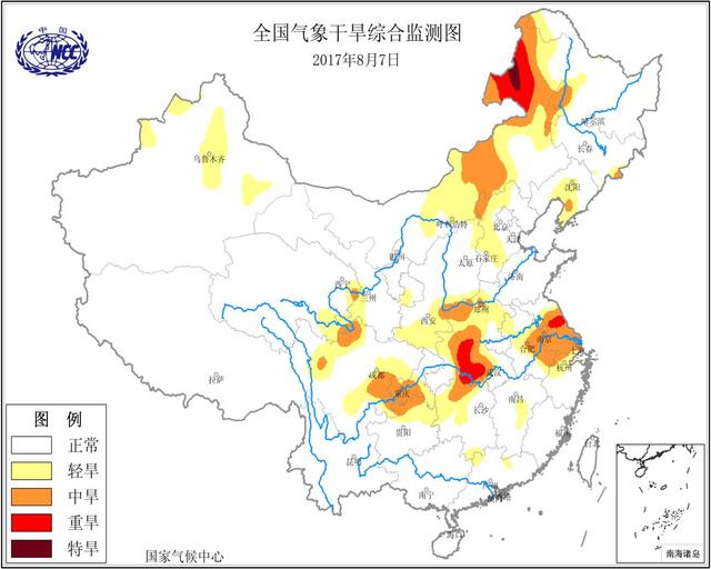 我们可以对比下8月7日和7月7日的干旱监测图,可以看到,1个月前,黑龙江西部还存在大片的中旱到重旱,尤其是漠河地区,达到了特旱级别,而在8月7日,经过一轮强降雨,黑龙江西部的旱情得到了明显的缓和,目前仅在边角地区有些轻到重旱。