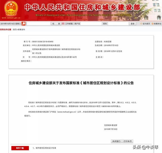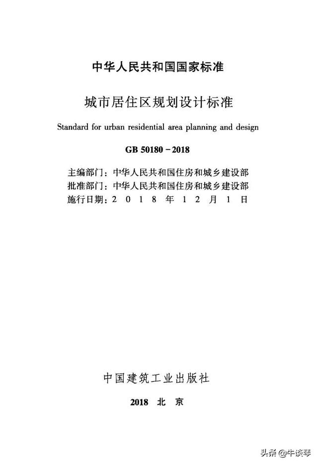 《城市居住区规划设计标准》为国家标准,编号为GB50180-2018,自2018年12月1日起实施。其中,第3.0.2、4.0.2、4.0.3、4.0.4、4.0.7、4.0.9条为强制性条文,必须严格执行。原国家标准《城市居住区规划设计规范》GB50180-93同时废止。