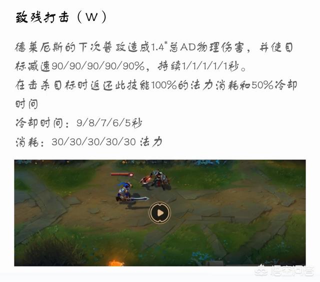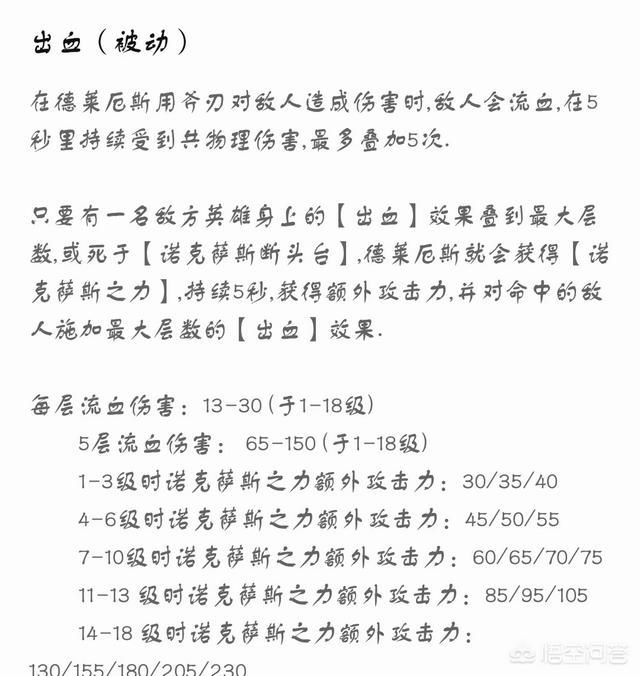 每层流血造成13滴的伤害,如果通过五次伤害以后,那就会得65滴流血,再加30攻击力,诺克也就是86的攻击。我们再来看看剑圣的技能