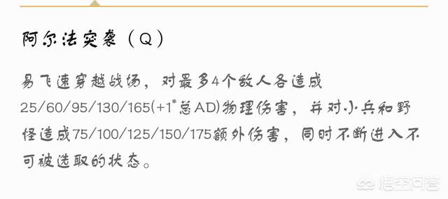 首先是被动,第四下造成双重打击,也就是60+30=90的伤害,再有就是阿尔法突袭。25+60=85的伤害。