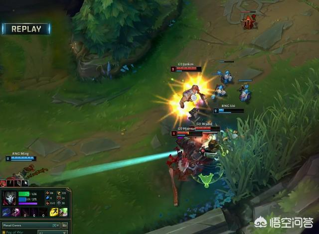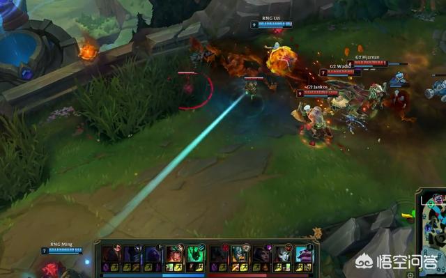 随后就是第二波上路GANK了,当时UZ手握双招而距离也有点远,UZI没有第一时间交上线或者逃跑,而是多A迟疑了一会,对面布隆也是直接开大,奥拉夫补上2演直接把UZI带走了,马老师则分析这是为了省技能应付下面的团战。