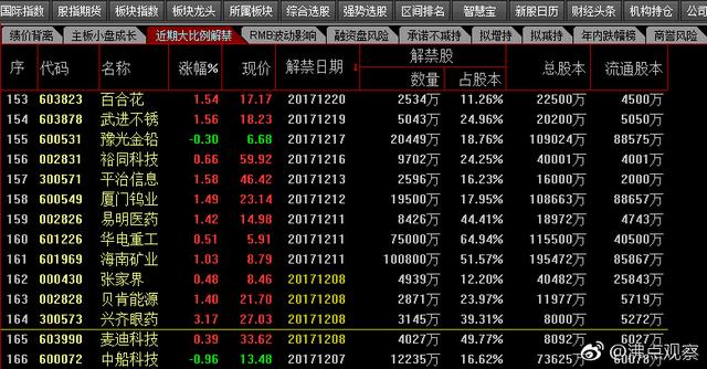 对于我们来说,只能要定期看下,近期大比例解禁股名单,尽量回避之。但如果是小比例解禁的个股,那影响就不大了。