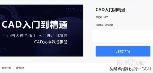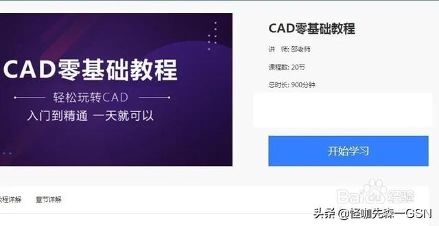 3.、点击第一个【CAD零基础教程】,随后进入了视频教程页面,然后点击【开始学习】按钮,这样便可以学习CAD了。
