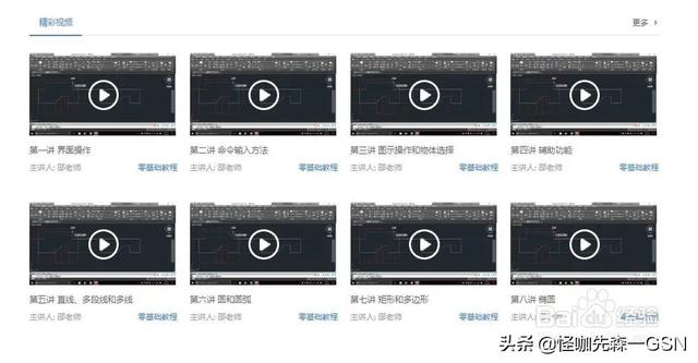 5、如果一开始就点击导航栏中的【CAD教程】,下方还有精彩视频教程供你查看,助你学习CAD更快。