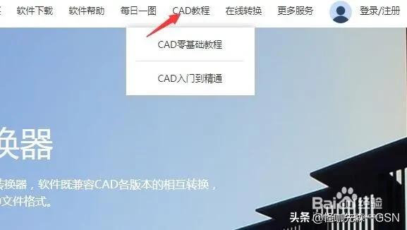2、然后进入网站后,首先在网站导的航栏中找到【教程中心】这个功能,鼠标触碰到上去,下方会看到两个二级栏目,分别为【CAD零基础教程】和【CAD入门到精通】。