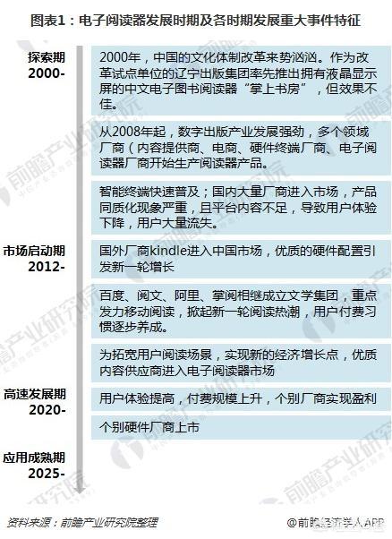 电子阅读器大致可分为4个阶段:探索期、市场启动期、高速发展期与应用成熟期。当前,电子阅读器行业正处于市场启动期,各大厂商进入市场,未来电子书阅读器的功能将实现新的突破。