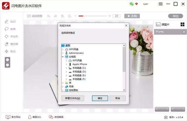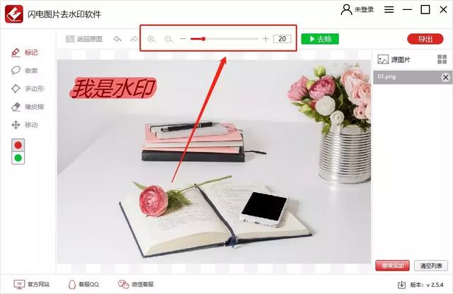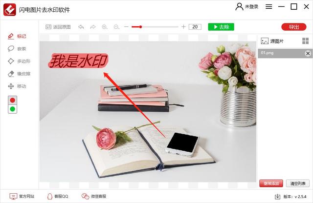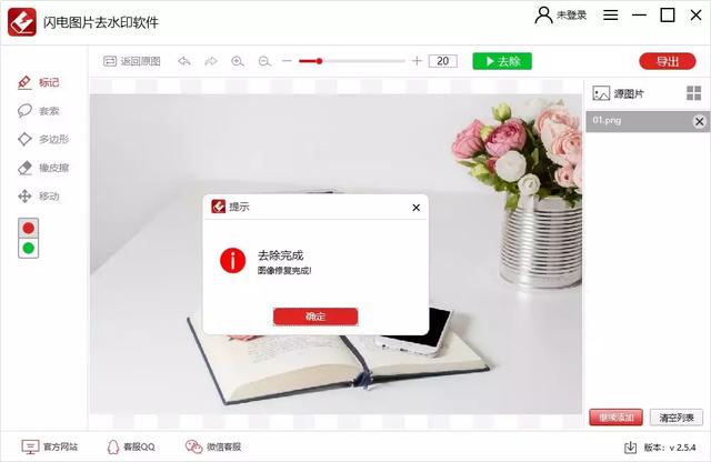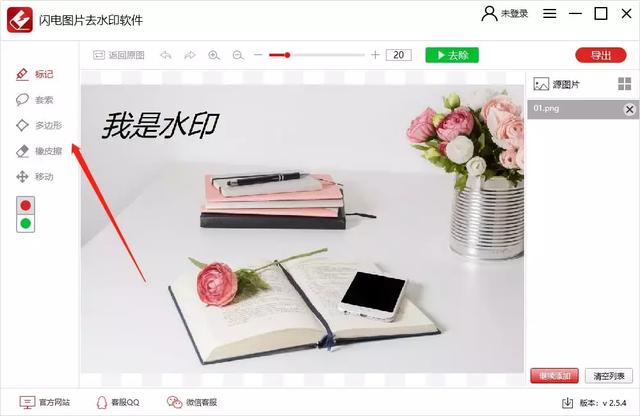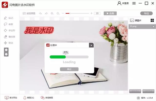 你好,去除图片中的水印,建议使用专业的软件实现哦,这里推荐你使用闪电图片去水印软件,可可免费试用哦,方法步骤也是很简单,下面是详细的操作步骤,希望能帮到你!