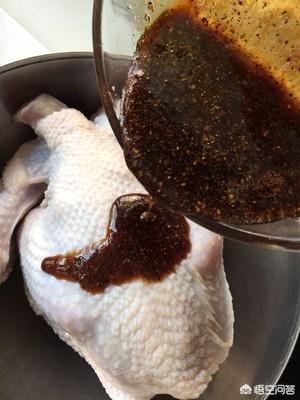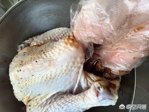 2.烤鸡需要用100:5的盐水比例腌制十个小时,最好是隔夜腌制,第二天晚上吃,因为要风干鸡皮两个小时和调料腌制入味六个小时。用盐水腌制过的鸡更入味也更加鲜嫩多汁。