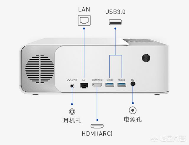 而我发现这款当贝的M3商用投影是一台智能投影仪,详情页还特别点出了其可以搭载商用OS(仅限酒店行业定制),去背后接口是酱紫的:
