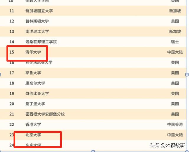 清华大学得到了有史以来最好的排名为第15位,北京大学第23。