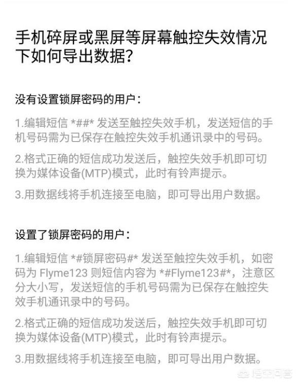 我的手机是魅族手机,flyme7系统专门为碎屏取数据提供了一个方案,那就是给碎屏手机通讯录(注意,必须是通讯录里的号码)里的号码发送特定代码,然后连接手机,就可以以U盘模式取出数据。我临时百度了一下,好像也只有魅族提供了这种方案。