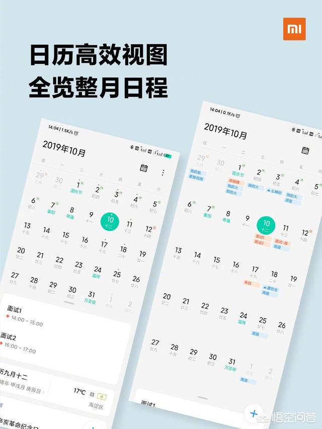 体验中也发现了一个细节,MIUI 11中新增了日历高效视图。在标准视图下,将日历往下拉就可以显示相关事项、日程之类。不过像华为手机我记得之前就有这功能了。