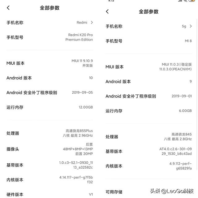 比如,目前推送的MIUI11.0.3.0稳定版是基于安卓9.0的;而基于安卓10的MIUI11只在部分手机上推送,或者是部分开发版。 比如,下图的小米8使用的就是基于安卓9的MIUI11,而红米K20 Pro使用的就是基于安卓10的MIUI11。 你如果想知道你是基于哪种版本的话,可以在设置中查看参数。