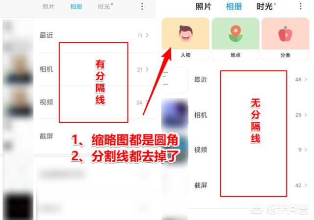 细节方面还有一个不得不说的地方,那就是在界面优化方面,剔除了很多无用的东西,从而增加美感。比如以前的相册里,相册之间都是有“分隔线”,如今这样的分隔线都被剔除了,界面反而显得清爽整齐。
