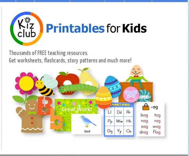 kizclub不仅有大量免费有声资源,关键它的素材是可以打印的,所以,它的口号是提供可打印的免费资源(printables for kids)。