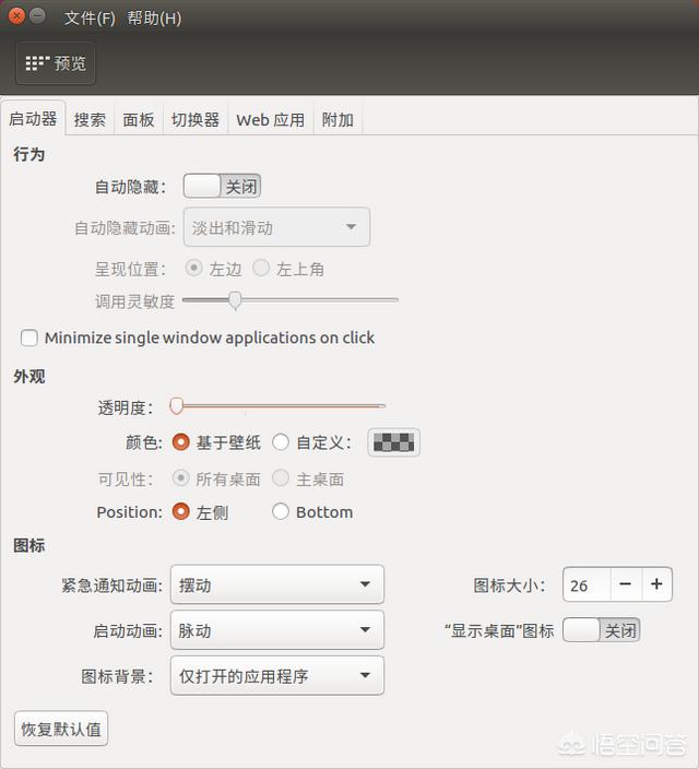 拉下透明度就可以了,unity-tweak-tool功能很多,可以根据自己需要设置