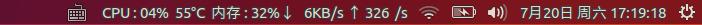 一、顶部任务栏显示网络,CPU,温度,内存