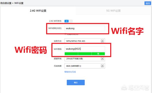 在设置了副路由的IP地址后,还需要设置Wifi名字和密码。