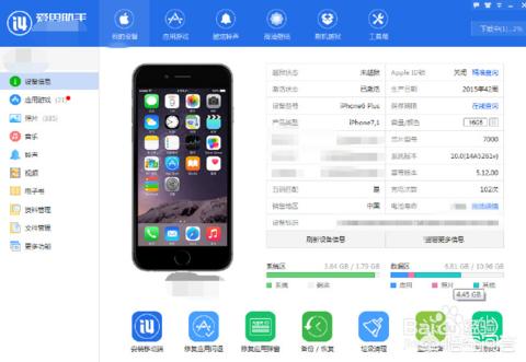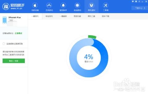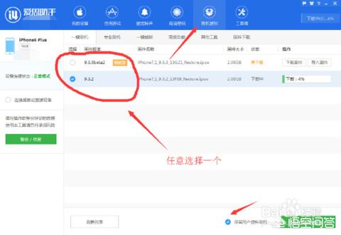 连接后,再打开爱思助手,进入到的它的界面时,找到“刷机越狱”用打开它,进入后,在它选项下找到且勾选要降级的版本。