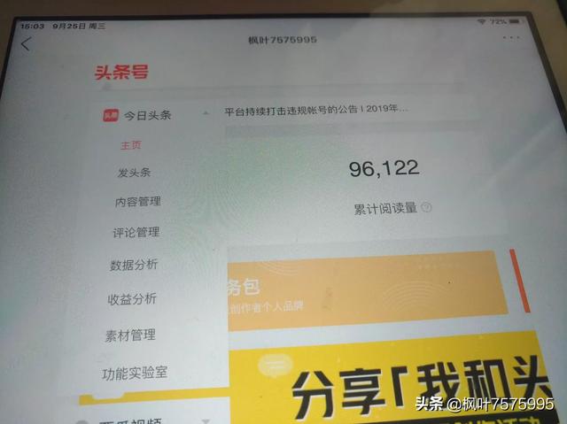 今日头条流量大,对于内容创作者来说,是传播内容和推广品牌的好平台,只要内容质量没问题,不用太担心阅读量,这也是很多同类平台无法比拟的优势。