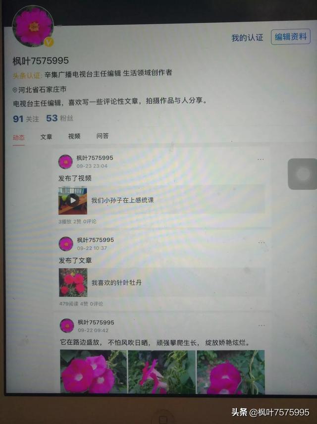 今年,在家看孙子的我萌生了要加入头条创作队伍的想法,从今年八月份开始,申请了黄V认证,目前正在申请优质生活领域创作者。我已陆续发表了106条新农商网、图文、小视频、微头条等,累计阅读量96122万次。