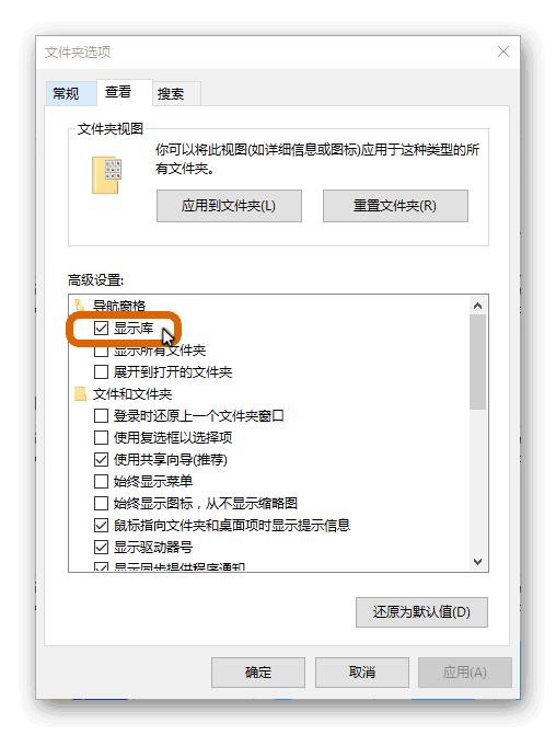 在 Windows 10 中,微软在新增「快速访问」的同时,也取消了「库」的默认显示。所以需要在文件资源管理器的 文件夹选项 中,勾选 显示库。