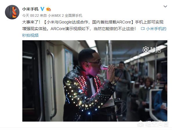谢谢邀请,从昨晚小米官宣中可以了解到这是国内首家与谷歌的Arcore合作的手机品牌。这也预示着小米即将发布的手机中将搭载此款合作成果。 Arcore通俗来讲就是一个可以将虚拟的电影人物或物件放的实际拍摄视频中,来实现和虚拟对象同框出现在视频中的AR技术。