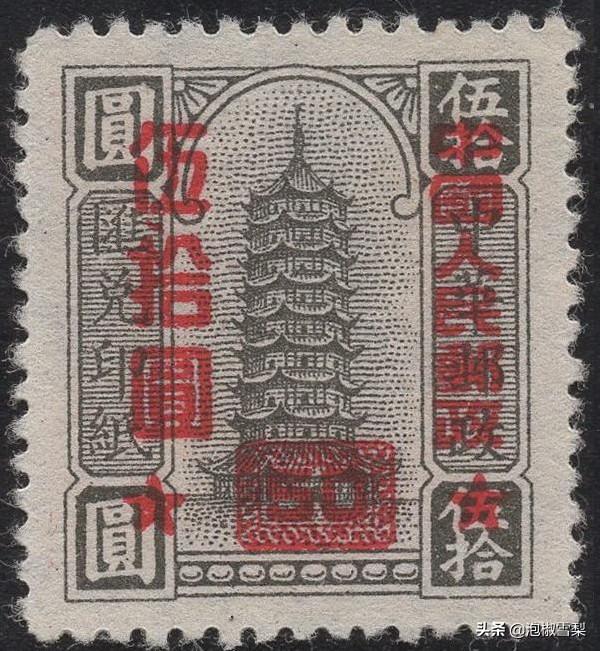 该票为改10第三枚,市价10元以内。原票为中华邮政汇兑印纸,加字改值为中国人民邮政使用。建国初期,为了降低成本,中国人民邮政使用大量旧政府遗留下来的各类邮票进行加字改值,因此产生了一类改值邮票,自改1开始至改10结束。所加印的面值为旧币值,一万元是新币制的一元,50元等于0.5分,不要以为是现在的50元。
