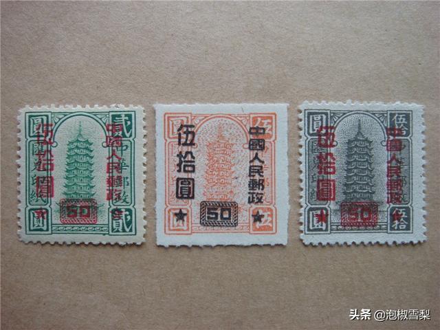 这种加字的邮票,是咱们国家建国初期比较穷,邮票使用量大,又没有能力大量印刷,所以将一些民国时期邮票重新加盖文字进行发售的。多以孙中山像、火车、轮船图案为主,这也算是一种应急措施。