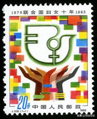 左边那枚没盖章手托和平鸽的,是1985年发行的J108 联合国妇女十年·1976~1985,现在市价1元左右。